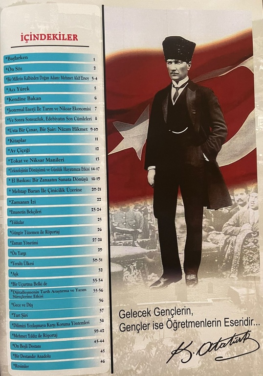 Okulumuz tarafından yayınlanan bilim-sanat dergisi Genç Niksar dergisi yeni sayısı ile siz değerli Niksarlılar'ın beğenisine sunuldu. İçeriği, okul öğrencilerimizin ve öğretmenlerimizin katkısı ile oluşturulan Genç Niksar, edebiyattan, teknolojiye, el sanatlarından, röportajlara kadar bir çok ilgi çekici konuyu barındırıyor. Kapak resmi, okulumuzdan 2024 yılında mezun olan ve şu an Tokat Gazi Osman Paşa Üniversitesi Resim Öğretmenliği bölümünde okuyan öğrencimiz Azra Talan'a aittir. Dergiyi okurken hoşça vakit geçirmeniz dileği ile.